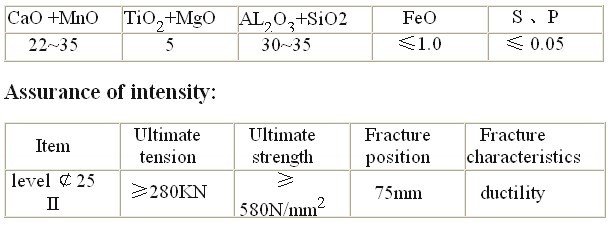Cautions: 1.Before the construction of reinforcing, do try to pull parts used to determine the best parameters; 2.Reinforced fluctuation concentric, two plane to level off; 3.Should not dirt, grease joint and high corrosion; 4.Flux should not in the rain, H2O ≤0.1%; 5.Change of power supply voltage should adjust to welding standard |